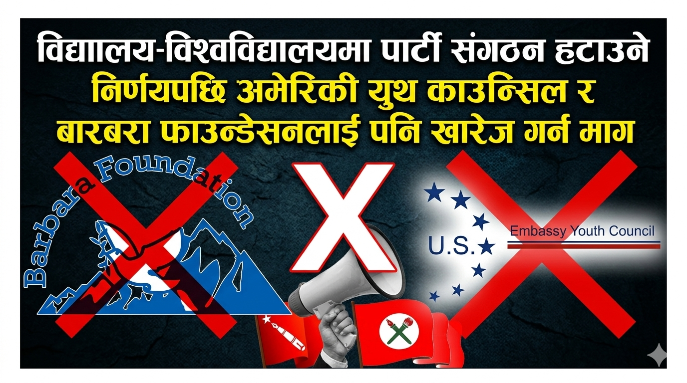 विद्यालय–विश्वविद्यालयमा पार्टी संगठन हटाउने निर्णयपछि अमेरिकी युथ काउन्सिल र बारबरा फाउन्डेसनलाई पनि खारेज गर्न माग