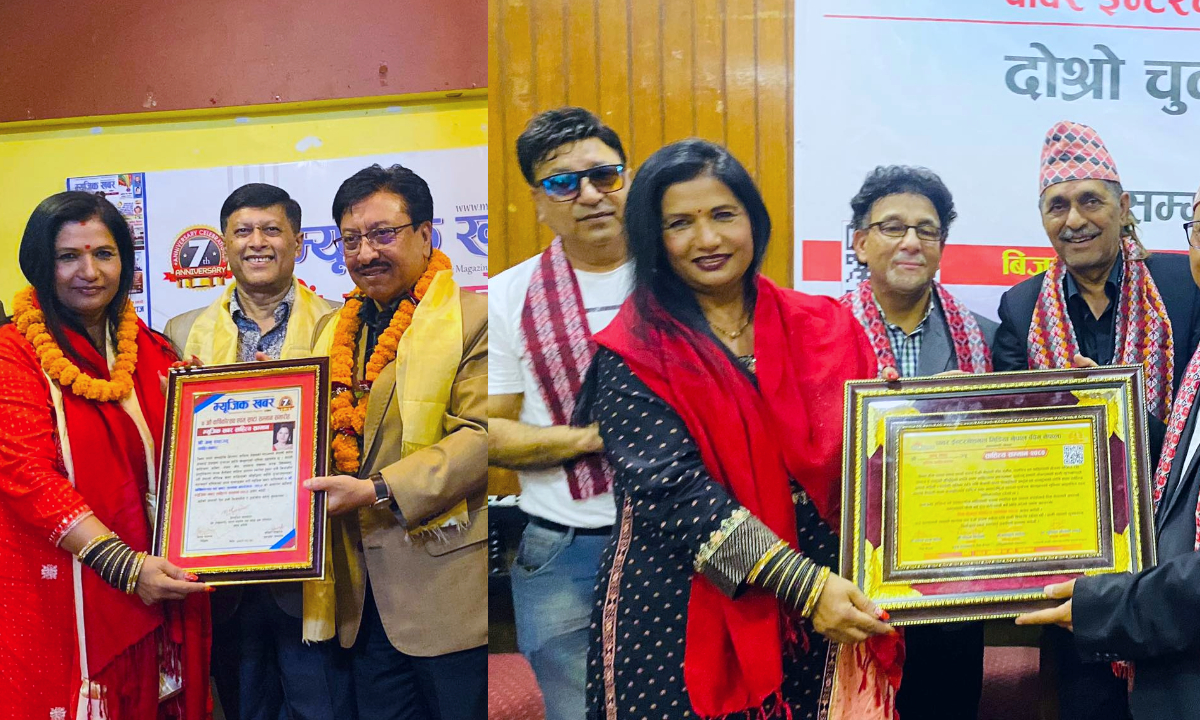 काठमाडौं । अमेरिकाको बोस्टन राज्यमा बसोबास गर्दै आएकी लोकप्रिय गीतकार, कवि, साहित्यकार तथा चलचित्र निर्मात्री अनु शाह एकैदिन दुई फरक कार्यक्रममा “साहित्य सम्मान-२०८०” बाट सम्मानित भएकी छिन्। डायस्पोरामा रहेर पनि नेपाली कला साहित्य गीत संगीत तथा चलचित्रको उत्थानको लागि विशेष योगदान पुर्याएको उच्च मूल्यांकन गर्दै उनलाई फरक फरक कार्यक्रममा एकैदिन दुई सम्मान गरिएको थियो।