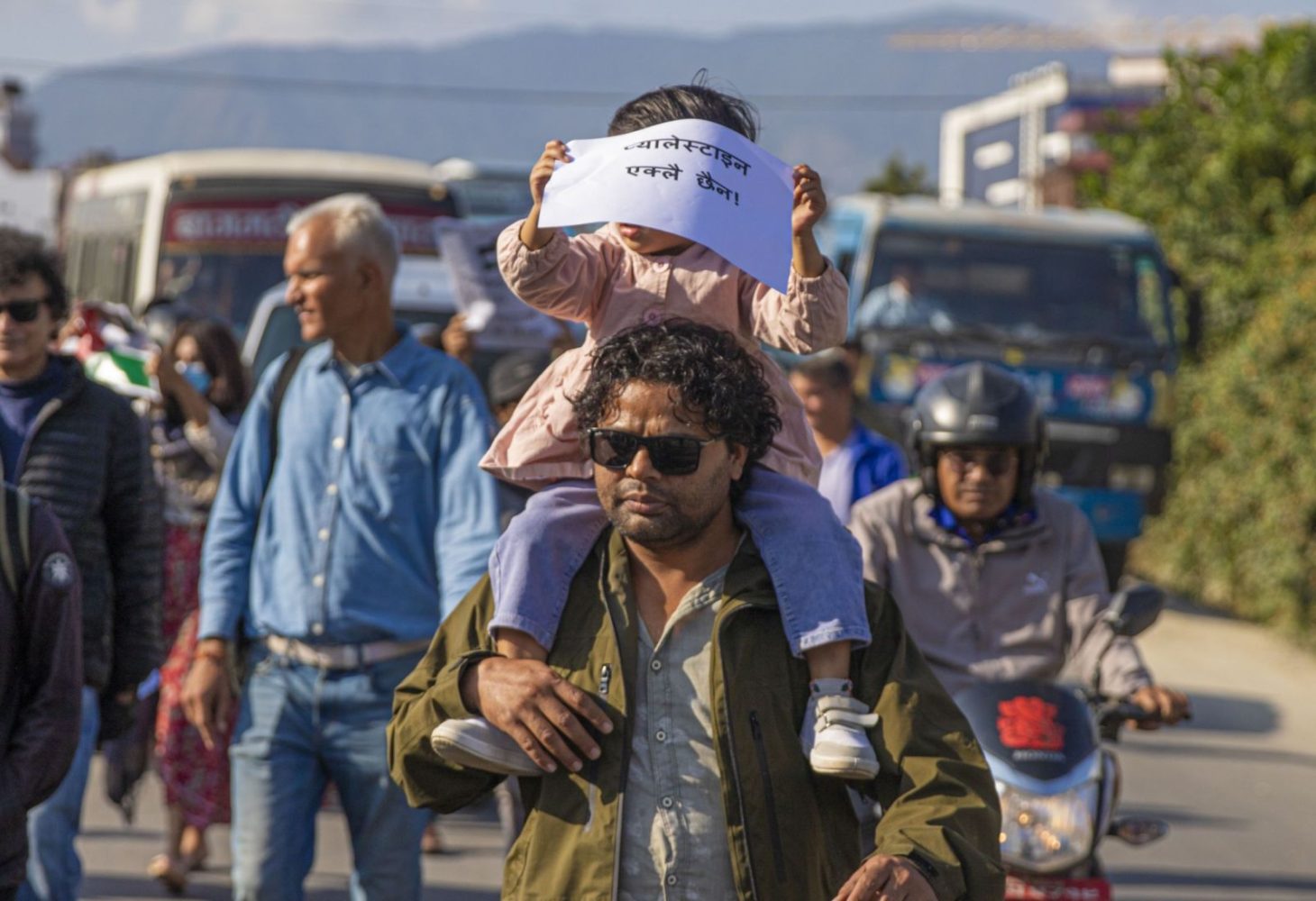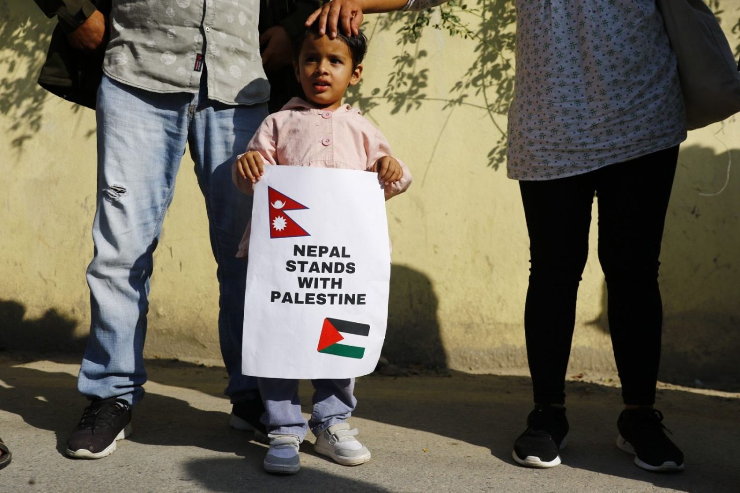 गाजामा नरसंहार रोक्न माग गर्दै दूतावास अगाडिको नागरिक प्रदर्शनमा पूर्व प्रधानमन्त्री सपरिवार