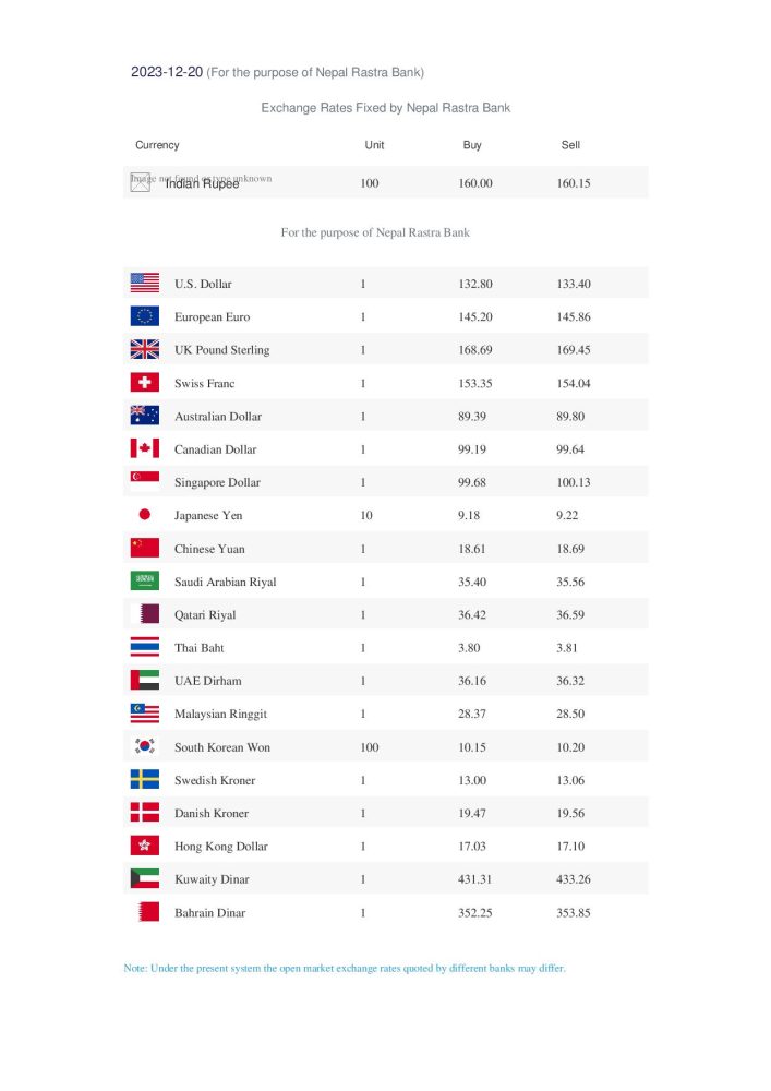 यस्तो छ आजको विदेशी मुद्राको विनिमय दर