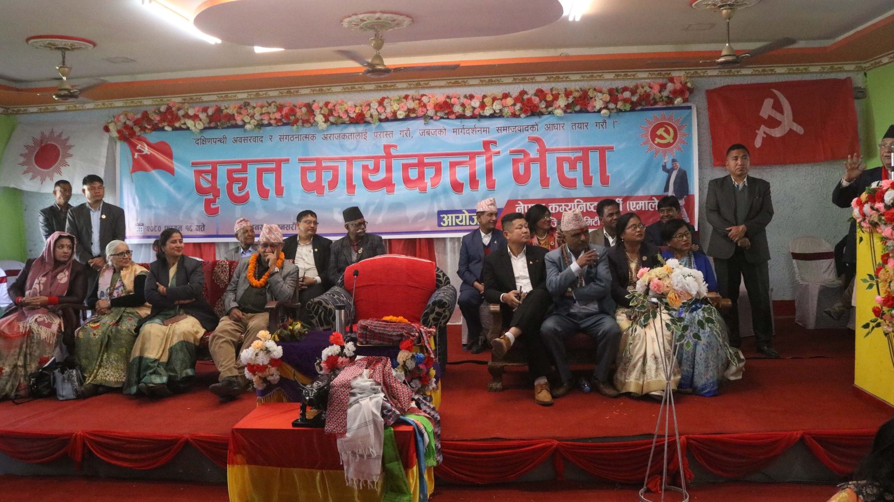 त्यस्तै इनरुवामा आयोजित बृहत कार्यकर्ता भेला लाइ सम्बोधन गर्दै ओलीले जो सुकै सँग पनि जुनसुकै बेला मिलेर नयाँ सरकार गठन गर्न सकिने र त्यसो गर्दा कोहि सँग मिले जस्तो देखिएपनि त्यो अस्थाई मिलन हुने भन्दै कार्यकर्ता लाई नझुक्किन आग्रह गरे। उप्त कार्यक्रम मा विभिन्न पाटी परित्याग गरि एमाले प्रवेस गर्ने सयौ कार्यकर्ता लाई पाटी प्रवेस गराउंदै ओलीले भने पाटीमा संघर्ष गर्न हैन काम गर्न आउनुहोस संघर्ष गर्ने झगडा गर्ने होइन। नेकपा को प्रसंग निकाल्दै उनले भने मलाई कारबाही गरेर सदस्य समेत नहुने गरि हटाएका थिए तेस्तो संघर्ष अब गर्नु पर्दैन।