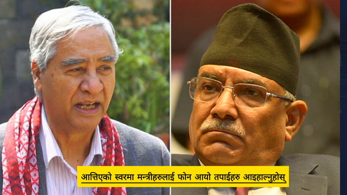सभापति देउवाले आइतबार अपराह्न ३ बजेदेखि पौने ७ बजेसम्म मन्त्रीहरुसँँग छलफल गरेका थिए। देउवाले मन्त्रीहरुसँग अब परिस्थिती उल्टिएको ब्रिफिङ गरे । माओवादीले जे–जे भन्छ त्यो मानेन भने अब तपाईहरुको जागिर खुस्किने भयो । जागिर त्याग्ने कि भनेको मान्ने ? देउवाको पहिलो वाक्य नै यही थियो । भेटमा सहभागी एक मन्त्रीले खुलाए । हामीले अब प्रचण्डले जे भन्छन् त्यो मानेनौं भने प्रचण्डले फेरि एमालेतर्फ जाने धम्कि दिइसकेको र आफूहरुलाई फेरि धोका दिएको इतिबृत्तान्त देउवाले छलफलमा सुनाएका थिए ।