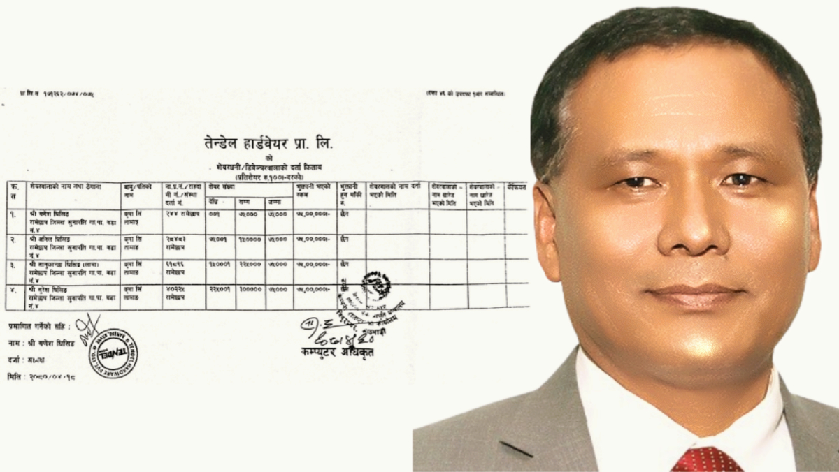 कुलमानका भाइहरूको नाममा रहेको सो कम्पनीले १७ वटा बैंकमा गरेर १ अर्बभन्दा माथिको कारोबार गरेको भन्दै उजुरीमा कुनै आयस्रोत नभएका कुलमान प्राधिकरणको प्रबन्ध निर्देशक हुनासाथ ३ करोडको लगानी रहेको कम्पनी दर्ता गर्न सक्ने भएको जिकिर गर्दै उजुरीमा कुलमानले प्राधिकरणको आवरणमा कमाएको अवैध आम्दानीको प्रयोग भएको दाबी गर्दै यस विषयमा गम्भीर छानबिन गरी सत्यतथ्य पत्ता लगाउन अख्तियारसमक्ष माग गरिएको छ । कुलमान २०७३ सालमा प्राधिकरणको प्रबन्ध निर्देशकमा नियुक्त भएका थिए भने उनले आफ्ना भाइहरूको नाममा २०७४ सालमा तेन्डेल हार्डवेयर नामक कम्पनी दर्ता गराएको देखिन्छ ।