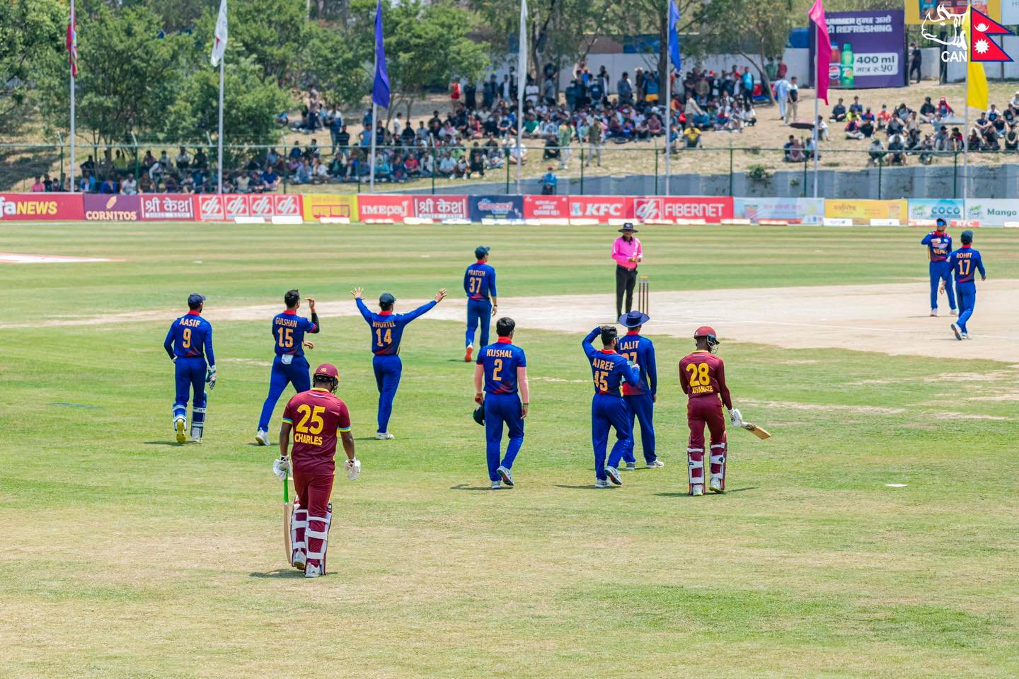 नेपालले चौथो टी २० खेलमा वेस्टइन्डिजसँग टस हारेर पहिला फिल्डिङको निम्तो पाएको छ । त्रिवि क्रिकेट मैदानमा भएको टसमा रोश्टन चेशले टस जितेर पहिला ब्याटिङ गर्ने निर्णय लिएका थिए ।