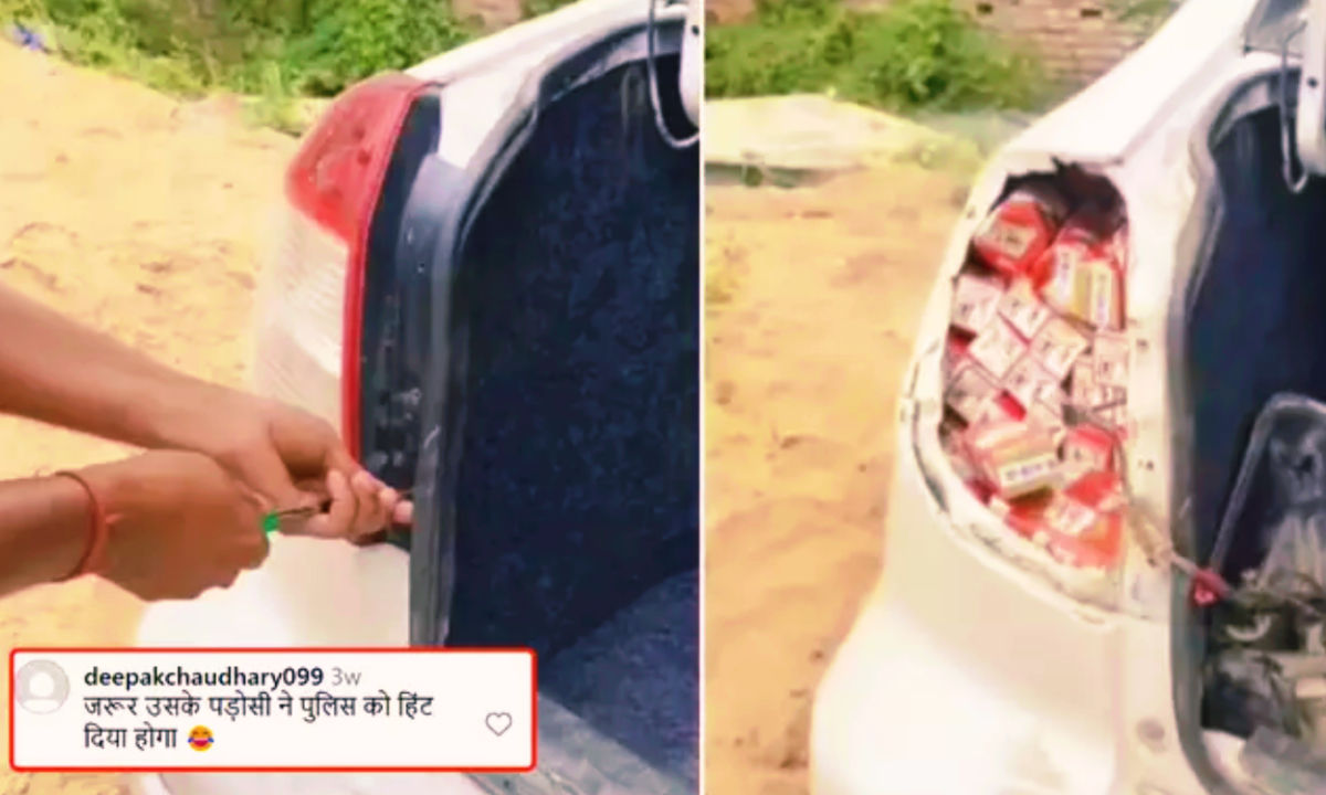हालै बाहिर आएको भिडियोमा मदिरा तस्कर गिरोहले प्रहरीको नजरबाट बच्न गाडीको पछाडिको बत्तीमा मदिराको टेट्रा प्याक लुकाएर राखेको देखिन्छ । तर जब उनी समातिए, उनको सबै बुद्धि खेर गयो। यो पोस्टमा प्रयोगकर्ताहरूले पनि कडा प्रतिक्रिया दिइरहेका छन्।