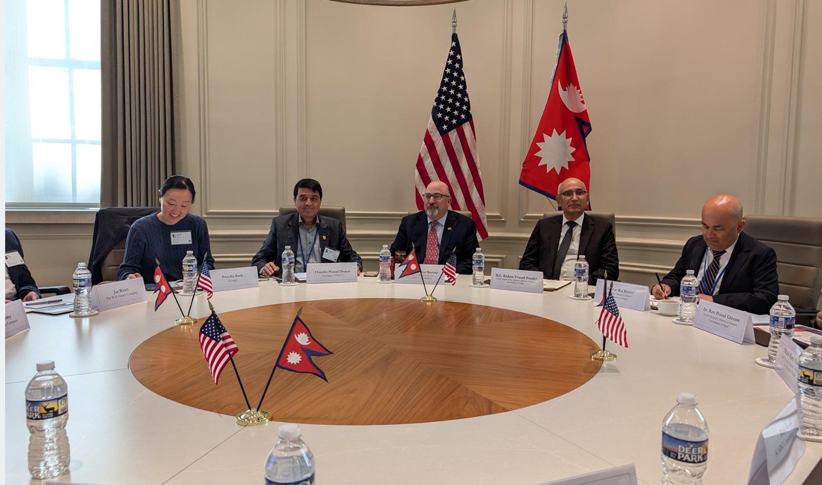 नेपाल उद्योग वाणिज्य महासंघघका अध्यक्ष चन्द्र ढकालले नेपालमा जलविद्युत् विकास तथा पर्यटन पूर्वाधार निर्माण क्षेत्रमा लगानीका पर्याप्त अवसर रहेकाले त्यसको उपयोग गर्न अमेरिकी लगानीकर्ताहरूलाई आग्रह गरे । छलफलमा बहुराष्ट्रिय कम्पनी गुगल, मेटा, कोकाकोलालगायत प्रतिष्ठित अमेरिकी कम्पनीका प्रतिनिधिको सहभागिता थियो ।