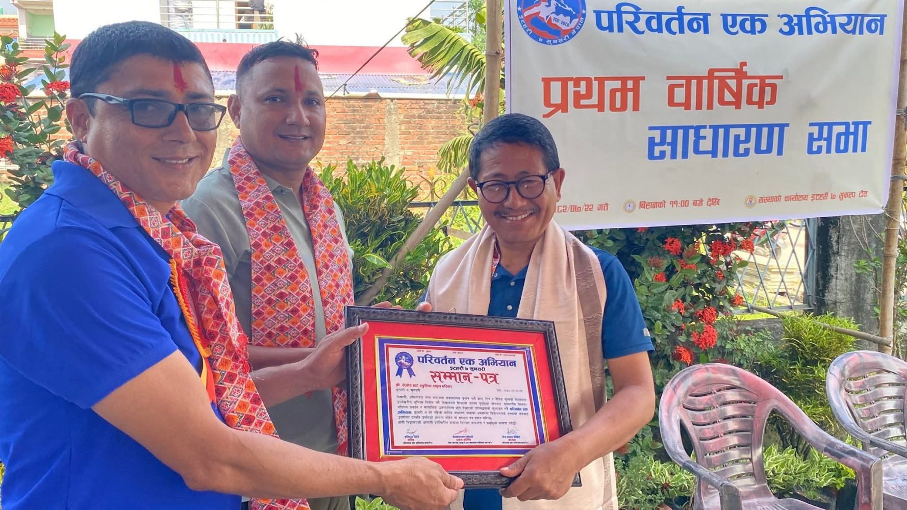 इटहरी, २०८२ कात्तिक २२। सामाजिक रुपान्तरण र सेवाभावमा समर्पित संस्था ‘परिवर्तन एक अभियान’ इटहरी–७, सुनसरी को पहिलो वार्षिक साधारण सभा संस्थाको कार्यालय परिसरमा भव्य रूपमा सम्पन्न भएको छ।