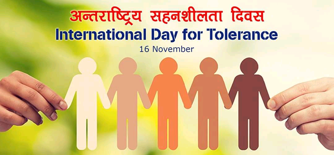 काठमाडौँ । आज नोभेम्बर महिनाको १६ तारिक अर्थात अन्तर्राष्ट्रिय सहनशीलता दिवस । बेमेल, असहमति, असमझ्दारी र असहनशीलपछिको खतराबारे जनचेतना फैलाउने उद्देश्यले आजका दिन विश्व समुदायले सहनशीलता दिवस मनाउने गर्दछ । १९९६ मा संयुक्त राष्ट्र महासभाले रिजोल्युसन ५१र९५ द्वारा संयुक्त राष्ट्र संघका सदस्य राष्ट्रलाई १६ नोभेम्बरमा सहिष्णुताका लागि अन्तर्राष्ट्रिय दिवस मनाउन आमन्त्रित गरेको थियो। त्यसपछि, हरेक वर्ष १६ नोभेम्बरमा विश्व समुदायले यो दिवस मनाउँदै आएको छ।