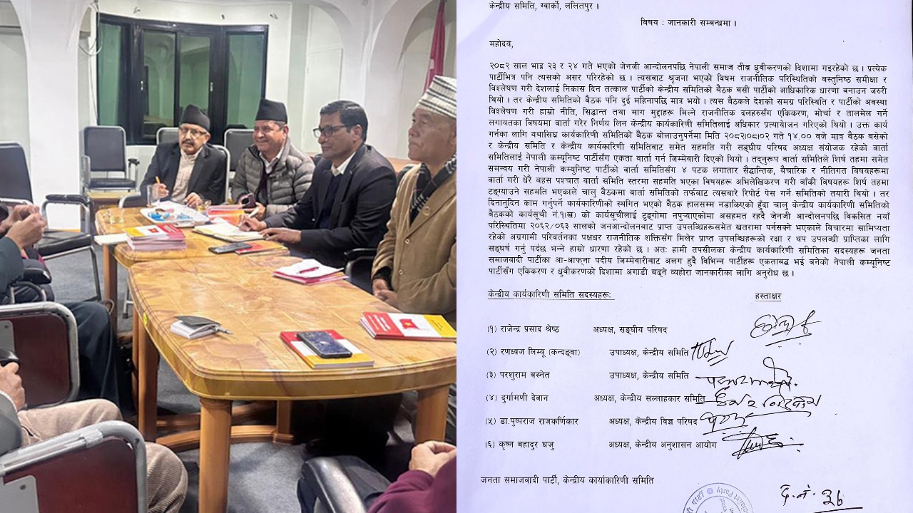 काठमाडौं । अशोक राई नेतृत्वको जनता समाजवादी पार्टी (जसपा)का ६ जना नेताहरू नेपाली कम्युनिस्ट पार्टीमा समाहित हुने भएका छन्।