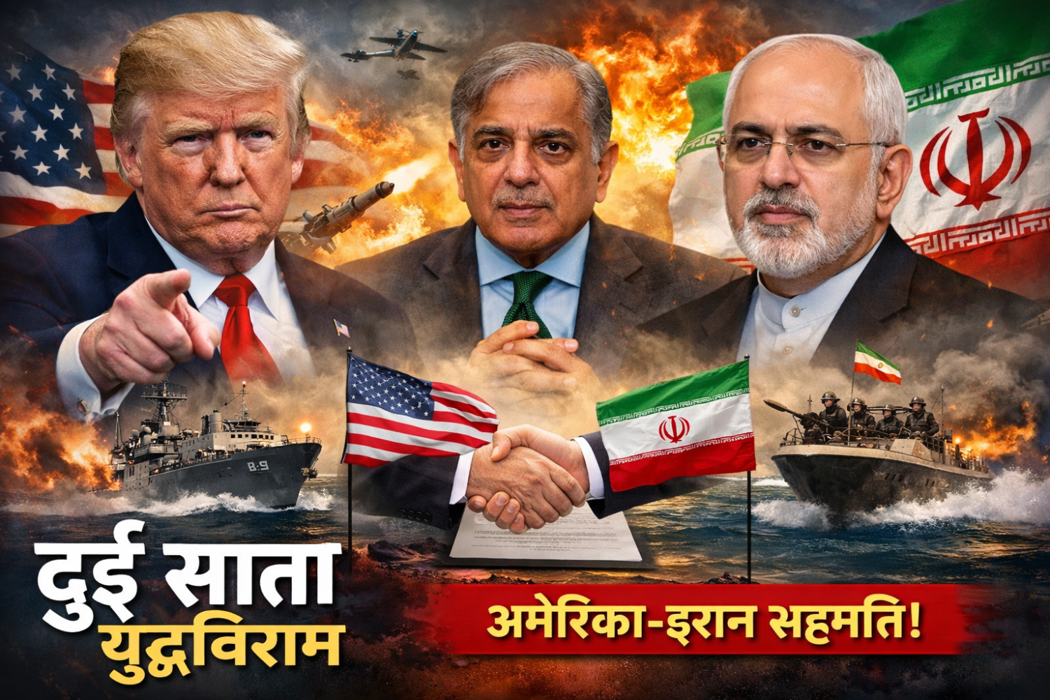काठमाडौं । संयुक्त राज्य अमेरिका र इरानबीच बढ्दो तनावका बीच दुवै देशले दुई साताका लागि युद्धविराम गर्ने सहमति गरेका छन्। अमेरिकी राष्ट्रपति डोनल्ड ट्रम्पले दिएको कडा चेतावनी र समयसीमा सकिन लाग्दा अन्तिम क्षणमा यो सहमति भएको हो। स्ट्रेट अफ होर्मुज खोल्ने विषयमा पनि सहमति जुटेको छ। पाकिस्तानका प्रधानमन्त्री शहबाज शरीफको मध्यस्थतामा भएको वार्तापछि युद्धविराम तत्कालै लागू हुने घोषणा गरिएको थियो। उक्त समयसीमा नेपाली समय अनुसार बुधवार बिहान ५:४५ बजे समाप्त हुँदै थियो।