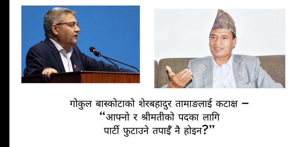 गोकुल बास्कोटाको शेरबहादुर तामाङलाई कटाक्ष – “आफ्नो र श्रीमतीको पदका लागि पार्टी फुटाउने तपाईँ नै होइन?”