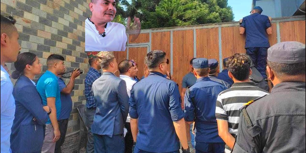 मेडिकल व्यवसायी दुर्गा प्रसाईं पक्राउ, एक घण्टासम्म गेट नखोलेपछि भर्याङ लगाएर प्रहरीको प्रवेश